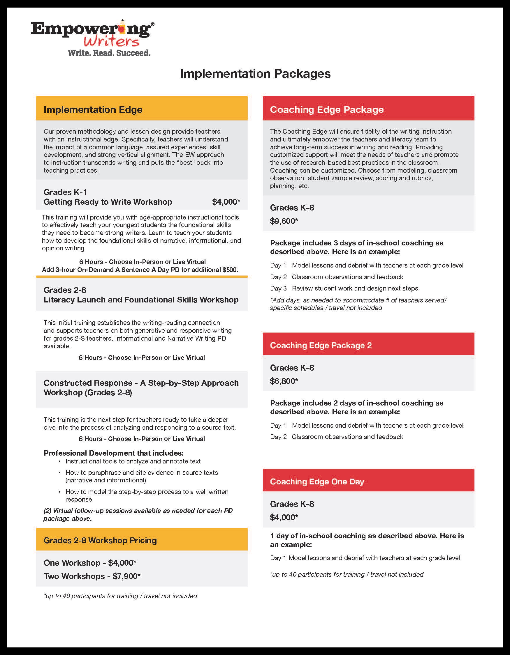 Empowering Writers provides everything your teachers need to teach writing well, improve student performance, raise test scores, maximize instruction time, and meet state standards.