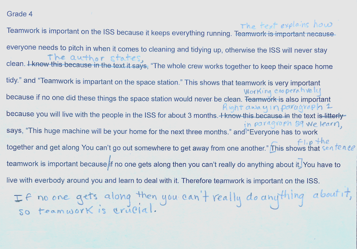 Grade 4 Short Constructed Response Score Point 3 - Space Station Passage