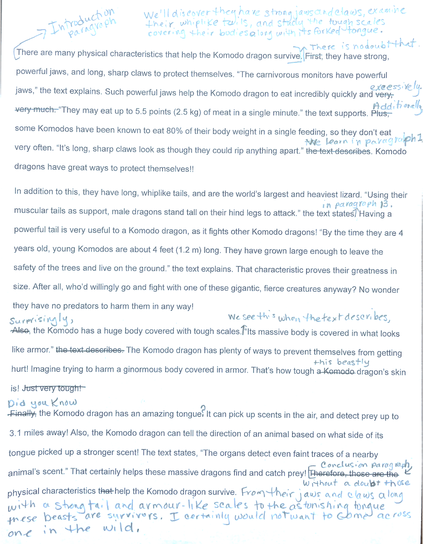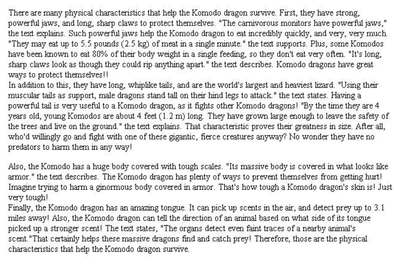 Grade 4 Extended Constructed Response Score Point 4 - Komodo Dragon Passage